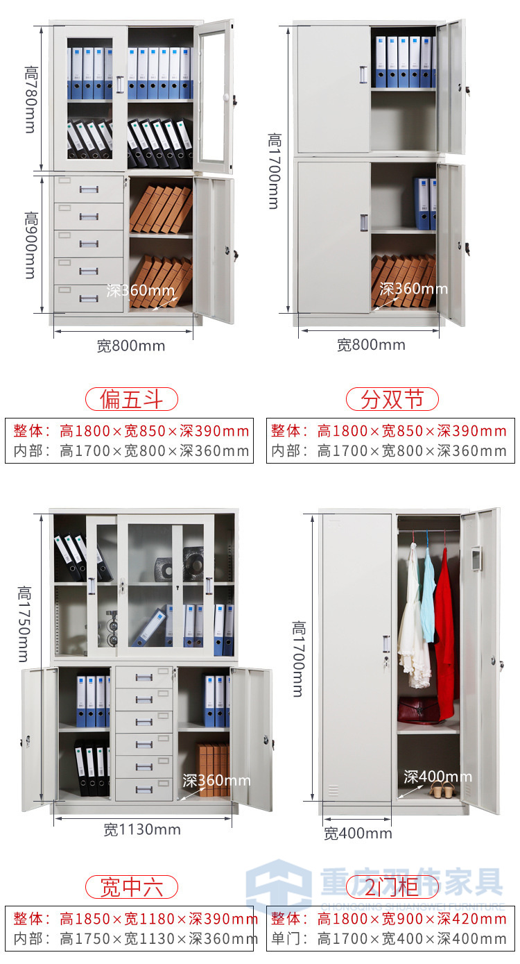 下節(jié)并列2抽屜+1全寬抽屜(雙壁前面板,配PVC內(nèi)嵌扣手/轉(zhuǎn)舌鎖,抽屜側(cè)板配尼龍腳輪)+對(duì)開(kāi)門(mén)(配PVC內(nèi)嵌扣手/轉(zhuǎn)舌鎖/號(hào)插,門(mén)背焊接全長(zhǎng)加強(qiáng)筋);